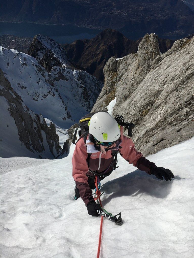 In inverno la modalità di ascesa più remunerativa alla Grigna è sicuramente tramite il Canalone Ovest, uno spettacolare canale di misto, che si conclude direttamente di fronte alla porta del rifugio, pronti per un buon piatto di pasta.