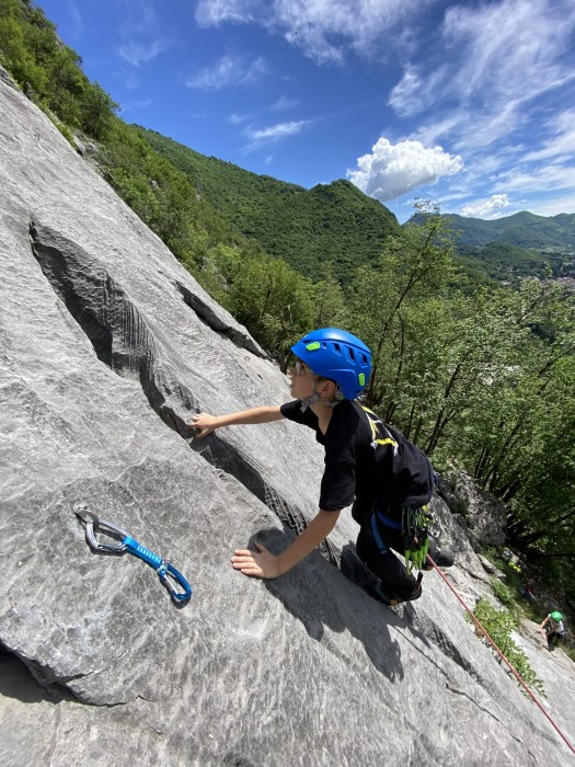 Abbiamo pensato quindi a delle lezioni per introdurre i piccoli aspiranti arrampicatori, nella dimensione verticale accompagnati in assoluta sicurezza da una Guida Alpina.