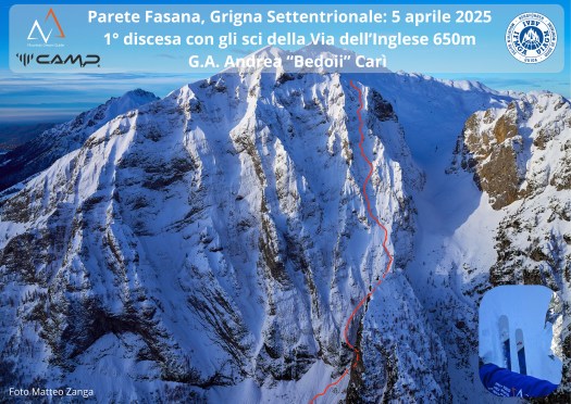 Ma la Fasana e nello specifico l’Inglese hanno una esposizione particolare… nella parte alta la parete è un Nord Est, al centro Nord e Nord Ovest e nella sua parte terminale quasi Est… questo complica e di non poco la scelta della tempistica di sciata.