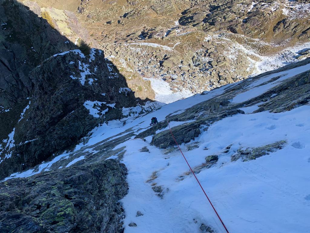 La via di salita tramite diversi tiri di cordata, percorre la parete Nord Ovest, salendo tra canali e diedri di roccia alternata a ghiaccio, regalando un arrampicata eccezionale e divertente.