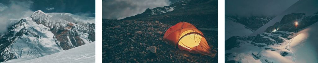 I campi base e i campi alti vengono preparati lungo il percorso con tutte le strutture necessarie come tende, razioni di cibo e kit medici. Serviranno ai trekker per il riposo, la fase di acclimatazione e per la preparazione alla salita in base al programma.
